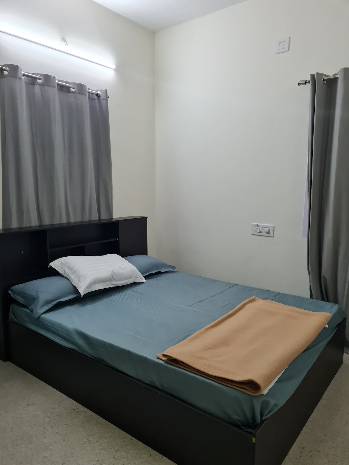 Sveiki atvykę į mūsų jaukius 1BHK namus Ukkadame, Koimbatore — jūsų tobulą nebrangią viešnagę! Erdvė švari, patogi ir idealiai tinka keliaujantiems vieniems arba mažoms šeimoms. Mėgaukitės kambariu su oro kondicionieriumi, nemokamu belaidžiu internetu, geriamuoju vandeniu visą parą, privačiu vonios kambariu, nedidelio automobilio stovėjimo aikštele ir vaizdo stebėjimo sistema. Atsipalaiduokite atviroje terasoje arba bendroje erdvėje. Netoli turgaus, restoranų ir transporto stoties, tai ramūs namai su visais patogumais. Leidžiama apsistoti su augintiniais. Skalbimo paslauga teikiama pateikus prašymą