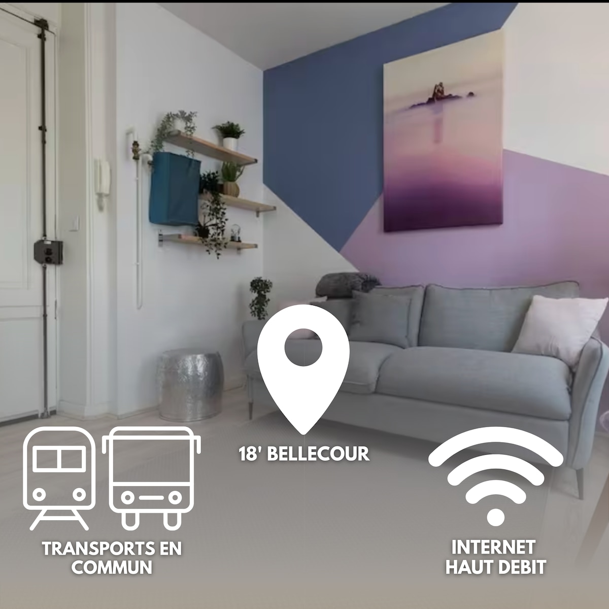 Welcome to our charming studio apartment perfectly located for a romantic getaway in the centre of Lyon! It has all the amenities for a comfortable stay, ideal for romantic couples who want to enjoy a stylish flat in Lyon. The flat is located directly 4 tram stops from Part-Dieu station (7min) and 5 stops from Lyon-Perrache station (10min) and is 2 minutes from Jet d'Eau-Mendès France station, at the intersection of trams T2 and T4.