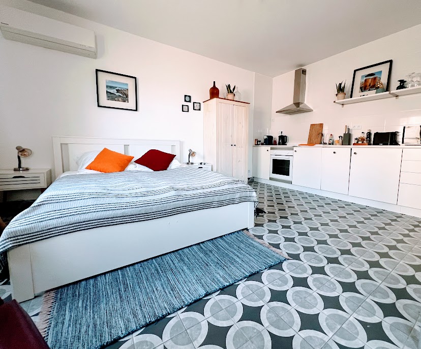 Nur 10 min zu Fuß vom Strand entfernt befindet sich das sehr liebevoll und modern ausgestattete, ganz neu renovierte Studio Apartment. Es liegt im Erdgeschoss unseres Modernen Privat Hauses und hat ein individuelles Eingang und eine voll ausgestattete moderne Küche. Dazu gibt es ein Zugang zu der Dachterrasse mit einem phänomenalen Ozean Blick. Nutzung von Gym ist frei und Sauna(extra), Surfbretter und Neos(extra). - Einkaufsmöglichkeiten im Dorf - Restaurants im Dorf & 10 min/Auto - Schön ruhig