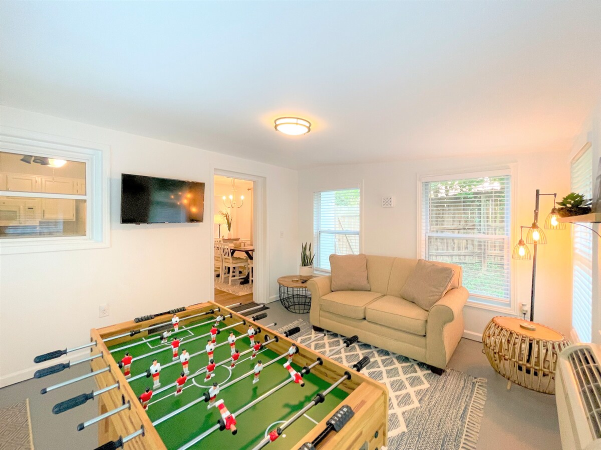 3BR/3BA Ranch House, IŠMANUSIS televizorius kiekviename kambaryje, privatus kiemas, kepsninė ir laužavietė. <1 mylia nuo Walmart, Lidl, Aldi 4 mylios iki Vudstoko centro 15 mylių iki PBR LakePoint 3,5 mylios iki Hwy 575 Visas apgalvotai suprojektuotas namas priklausys tik jums. Mėgaukitės ką tik renovuotais namais su daugybe NATŪRALIŲ ŠVIESŲ, PILNAI ĮRENGTOMIS VIRTUVĖMIS, ekranuotomis VERANDOJE, STUDIJA su daugybe ŽAIDIMŲ. Miegokite iki 8 asmenų! Daugelis parduotuvių ir vietinių restoranų 2 mylių spinduliu nuo namų.