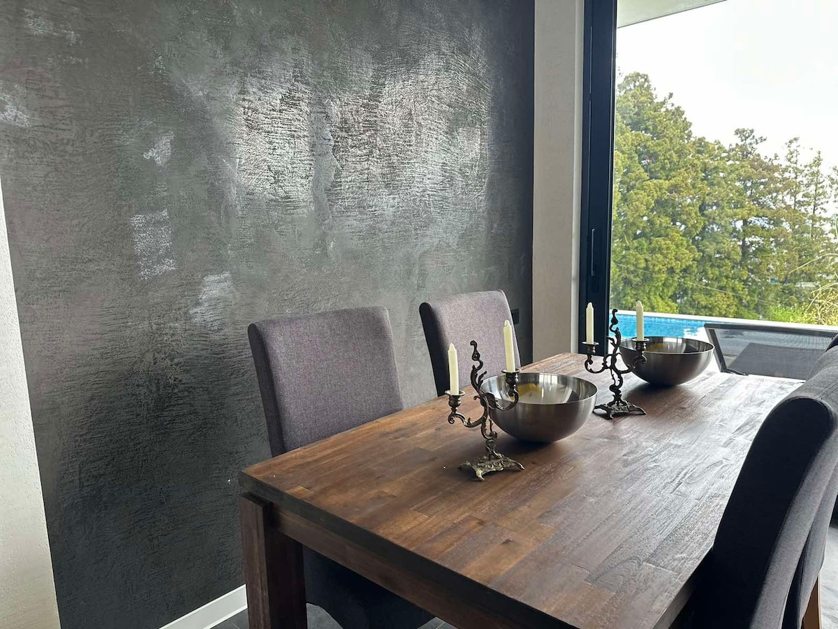 Sveiki atvykę į mūsų trobelę Grenlandija Pheria, kur kaimo atmosfera susitinka su komfortu gyvybingoje gamtos širdyje. Iš šios šviesios ir stilingos trobelės atsiveria nuostabūs vaizdai į jūrą ir kalnus iš jūsų privataus balkono ir įlankos langų, vos už kelių metrų nuo Batumio miesto. Mėgaukitės nemokamo oro kondicionieriaus ir namų kino projektoriaus teikiamais patogumais ir kitais šiuolaikiniais patogumais.