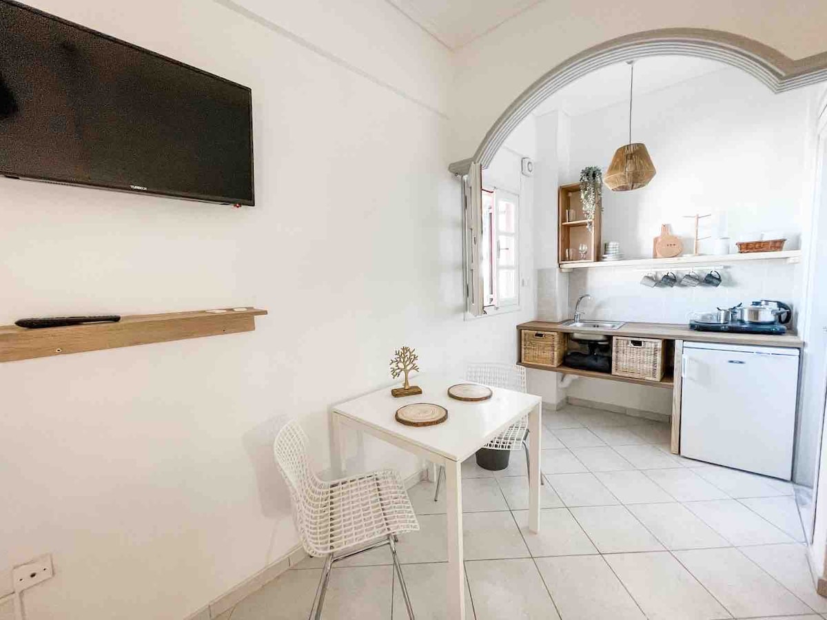 Vos už 30 m nuo juodo Kamari paplūdimio, Sail Inn Studios & Apartments siūlo apgyvendinimą su savitarnos maistu, mėgaujantis vaizdu į Egėjo jūrą ar kalną. Pajūrio promenadą galima pasiekti per trumpą pasivaikščiojimą .Šviesiose oro kondicionieriaus studijose yra virtuvėlė su elektriniu virduliu ir mini šaldytuvu bei vonios kambarys su (URL PASLĖPTAS) 50 m atstumu nuo komplekso yra autobusų stotelė, jungianti su sostine Fira maždaug 10 km atstumu. Santorinio oro uostas yra už mažiau nei 10 min., 5 km.