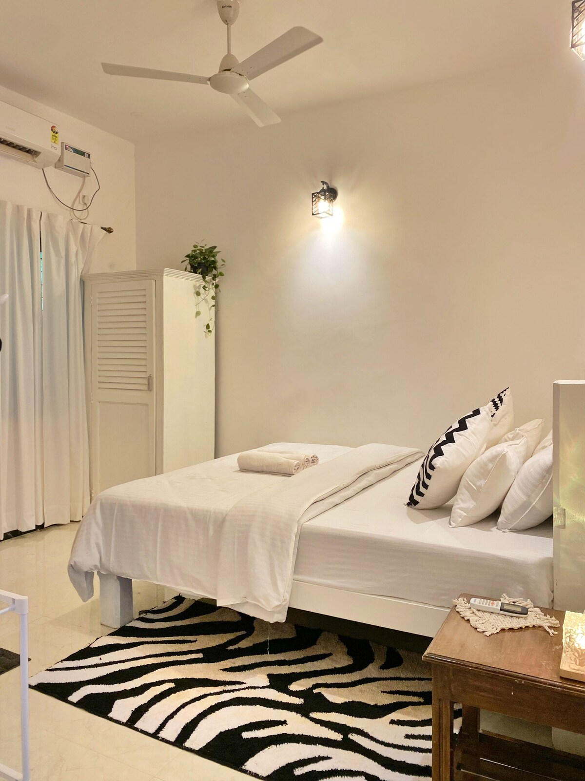 Algaari House is a spacious 1BHK riverside retreat with a private patio and workspace, perfect for long stays and WFH. The black-and-white interiors, inspired by the host’s art, add charm. Just 20 steps from the Chapora River, it’s ideal for fishing (bring gear), kayaking, or scenic walks. Amenities include a fully equipped kitchen, washing machine, AC, fridge, and parking space. Enjoy peaceful views, comfort, and convenience in this art-inspired getaway. Please do not ask for discounts.
