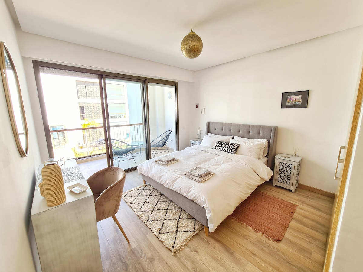 Patogūs, prabangūs ir atpalaiduojantys namai Rabate keliautojams, vertinantiems komfortą, papuoštas skoniu ir dėmesiu detalėms ramiame ir saugiame rajone. Jis yra tiesiai priešais vandenyną, netoli parduotuvių ir restoranų. Taip pat vos už 10 minučių kelio pėsčiomis nuo „Kasbah“, „Senosios Medinos“ ir Rabato paplūdimio. Šis butas yra geriausias pasirinkimas poroms ar draugams, keliaujantiems Rabate. Padarėme viską, kad viešnagės Rabate metu jaustumėtės kaip namie. AC + SPARTUSIS WI-FI + NETFLIX