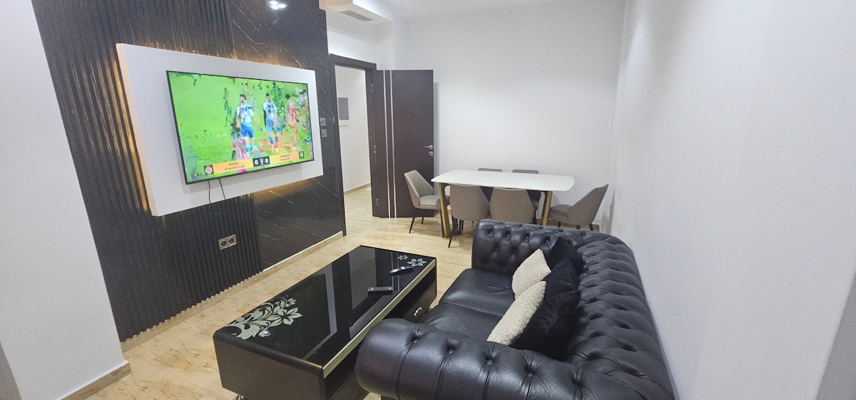 ✨ Spacious high-standing apartment of 150 m² in the city center of Oran. Bright and fully air-conditioned, it offers 3 comfortable bedrooms, a large living room with OLED 4K TV (Netflix, Prime, Apple TV+), a modern equipped kitchen and a spacious bathroom. Two large balconies with a beautiful view. Quiet and secure residence with guard, close to shops, restaurants and all amenities. Ideal for families, tourists and business travelers.