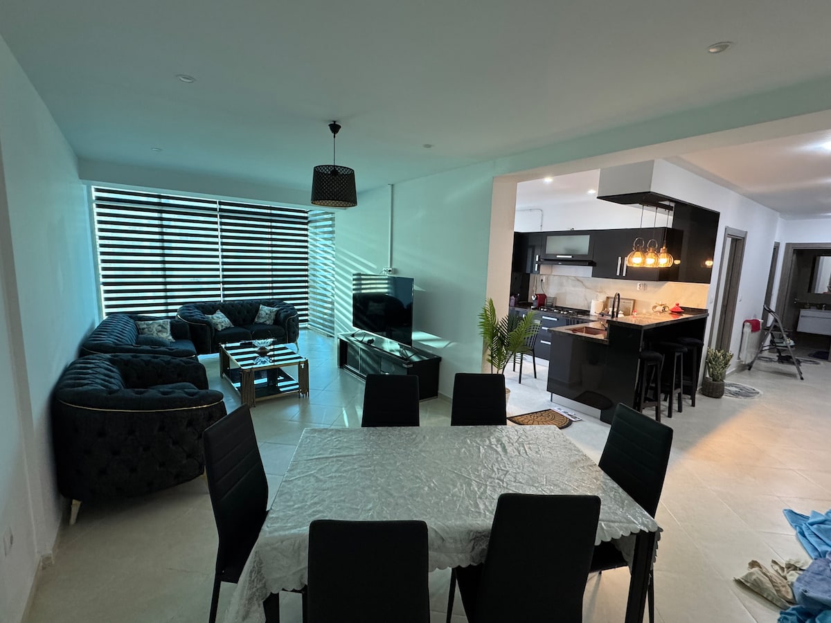Mėgaukitės stilinga vieta apsistoti ir centre, prospekte netoli miesto, palmės, naujas ir šviesus butas 59 m2 ploto, su oro kondicionieriumi , esančia modernios gyvenamosios vietos 10 aukšte, jei norite, galite išsinuomoti vieną automobilio stovėjimo vietą (2 liftai )