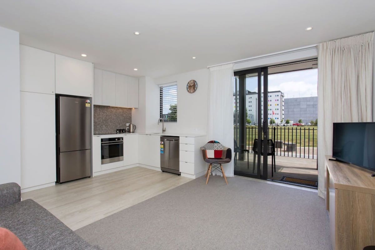 Closest apartment to One Stadium! Have a drink on the deck and then walk across the street to the stadium. Too easy! Luxury ground floor apartment in central Christchurch. This spacious luxe 1 bedroom, 1 bathroom apartment is full of natural light and boasts an outdoor deck with a courtyard outlook. The apartment has everything you will need for your stay, a drink on arrival and pantry essentials. This apartment is as central as it gets. Free car park across the street in a secure building.