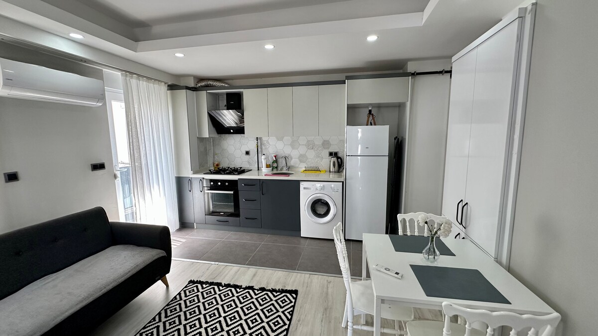 Kur prabanga atitinka komfortą Antalijos širdyje 📍 Mūsų stilingas ir elegantiškas butas, esantis netoli paplūdimio ir istorinių vietų, puikiai tinka šeimoms, poroms ir draugų grupėms. Mėgaukitės ramiais saulėlydžiais privačiame balkone, atsipalaiduokite SPA ir kūno rengybos centre bei paruoškite maistą privačioje virtuvėje. ✅ Erdvi svetainė ✅ Nemokamas didelės spartos Wi-Fi ✅ Oro kondicionierius Netoliese yra parduotuvės, restoranai ir naktinis gyvenimas. Užsisakykite dabar ir mėgaukitės nepamirštama viešnage!