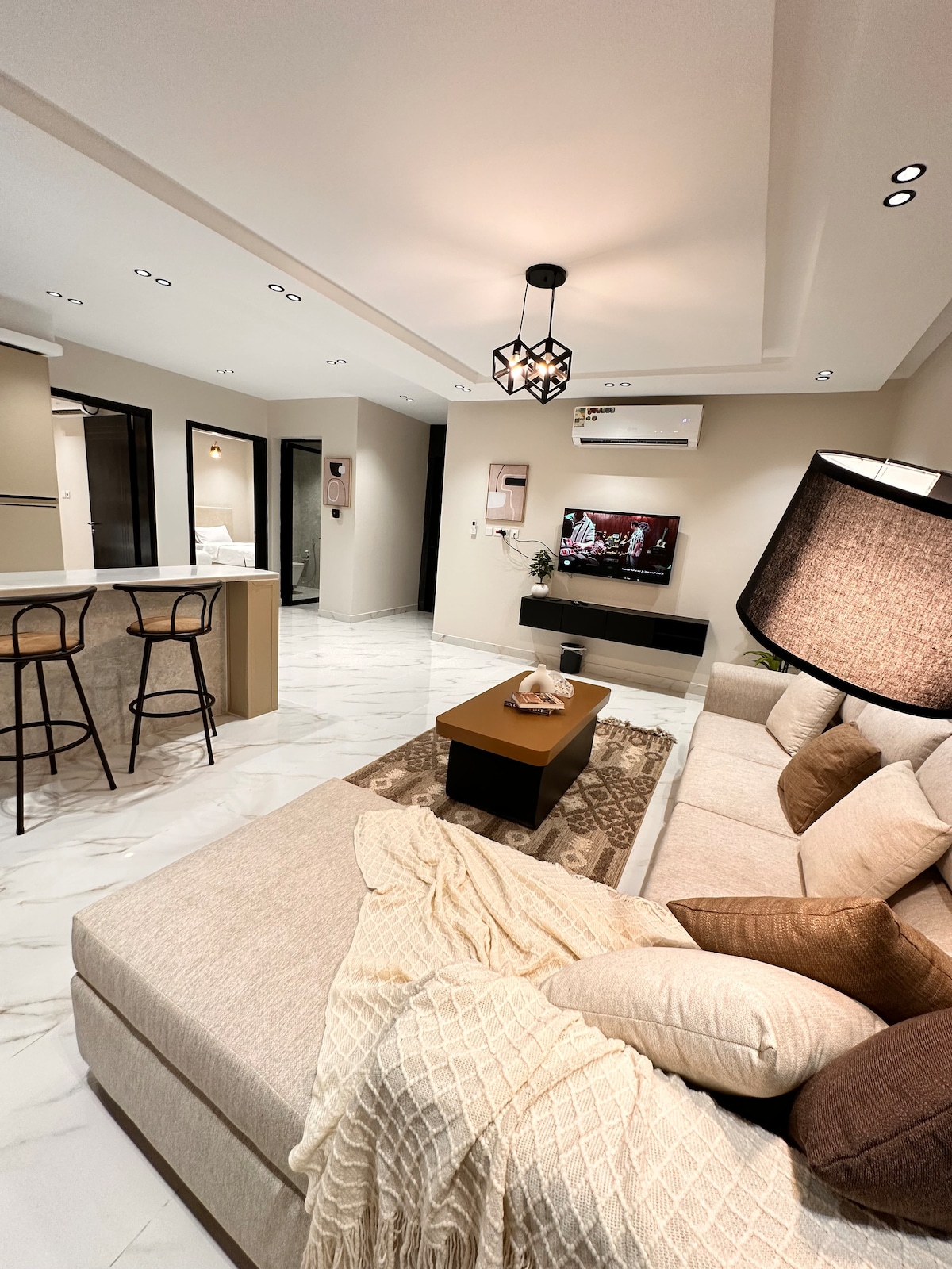 Vidutinis įvertinimas: 4,87 iš 5, atsiliepimų: 104شقة فاخرة في الخبرغرفتين نوم ومساحة للالعاب للكبار