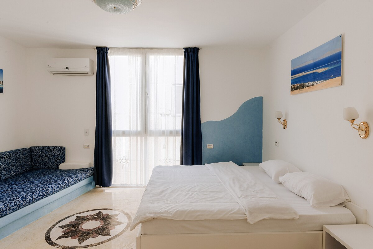 Apsistokite „The Pharaonic House“, esančiame priešais naujuosius Gizos piramidžių vartus, gyvybingame piramidžių sodo (Hadayek El Ahram) rajone. Svečių namuose yra unikalūs rankomis tapyti senovės Egipto meno kūriniai, o iš balkono ir dviejų kambarių atsiveria gražūs piramidžių vaizdai. Mėgaukitės rytine kava ar maistu stebėdami saulėtekį ir saulėlydį virš piramidžių. Puiki viešnagė keliautojams, ieškantiems komforto, kultūros ir nepamirštamo vaizdo.
