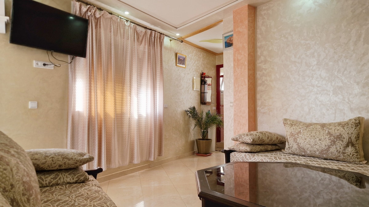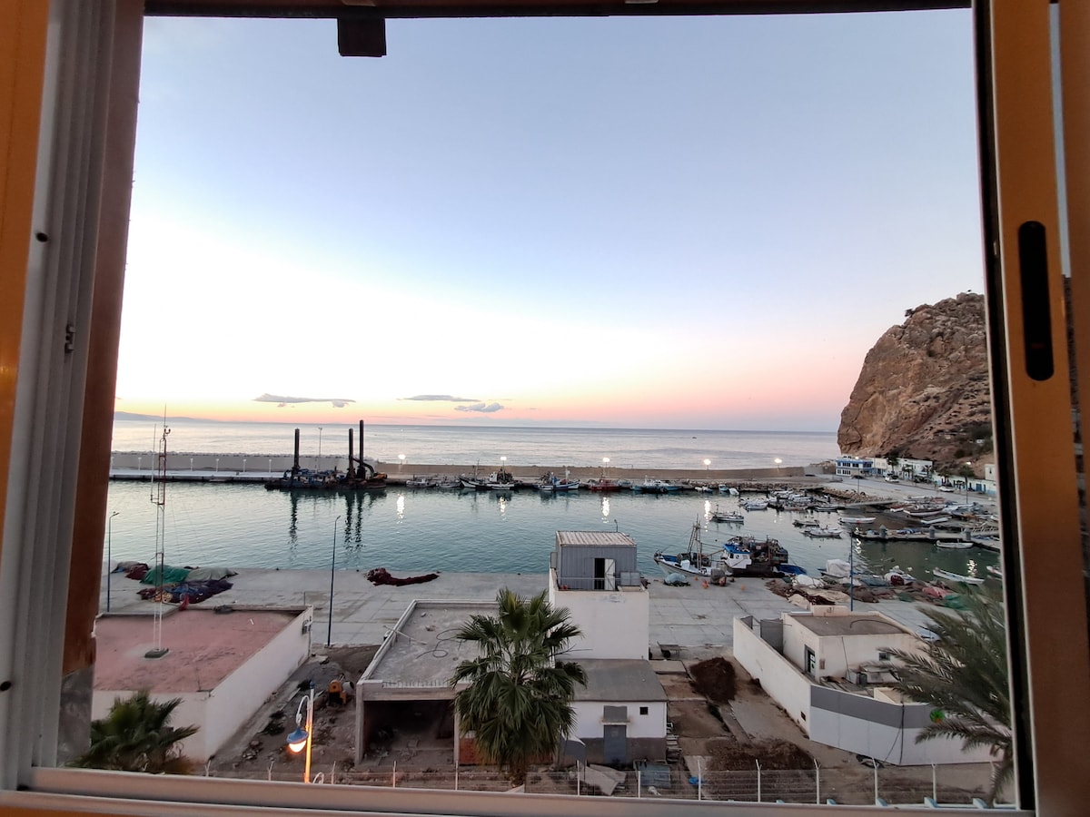 انعم بالهدوء والاسترخاء بصحبة عائلتك في هذا المسكن الهادئ. الجو معتدل او بارد بسبب النسيم القادم من البحر ولن تشتكي من الحر غالبا. الحي هادئ ولا ضجيج فيه . السطح يطل على كامل شواطئ الحسيمة من الجهة الشمالية ويمكنك الإستمتاع بالغروب من السطح تحت اصوات طائر النورس. السطح يكون مضللا ما بعد الزوال فيكون مجلس مثالي لإحتساء الشاي. الاسرةمريحة و دافئة.