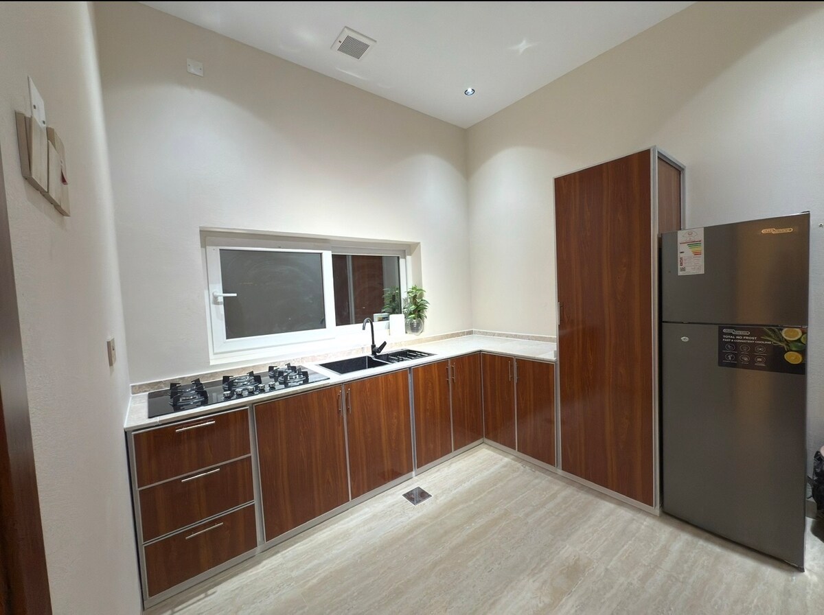 2 miegamųjų pastatas, 2 svetainės, 2 vonios kambariai, taip pat virtuvė ir suaugusiųjų bei vaikų baseinai su vandens šildytuvu ir vaikų žaislais. Vieta yra netoli Wadi Bani Khalid. Yra Wi-Fi išlaipinimas.