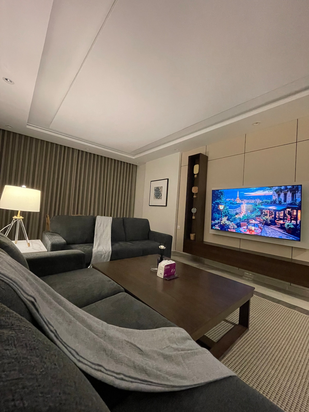 Integruota studija prabangiame rajone 5G internetas Ir didelis 65 colių išmanusis ekranas Prisijungimas/išėjimas su visišku privatumu Laikoma netoli visų miesto lankytinų vietų Ryškiausios netoliese esančios lankytinos vietos ( 5 minutės kelio automobiliu) : Qiblatain mečetė Tranšėja ir septynios mečetės Sultana ir žiedinis kelias Tiba ir Islamo universitetas King Fahd ligoninė Dr. Fakieh ligoninė Wadi Al Aqeeq Walk Finansų ministerija, Zakato administracija ir Maisto ir narkotikų tarnyba (už kelių žingsnių) 11 minučių kelio nuo miestelio, 14 minučių rajono ir Kuba mečetės 16 minučių Su galimybe parūpinti automobilį ir privatų vairuotoją. Ir registratūra bei atsisveikinimas oro uoste...