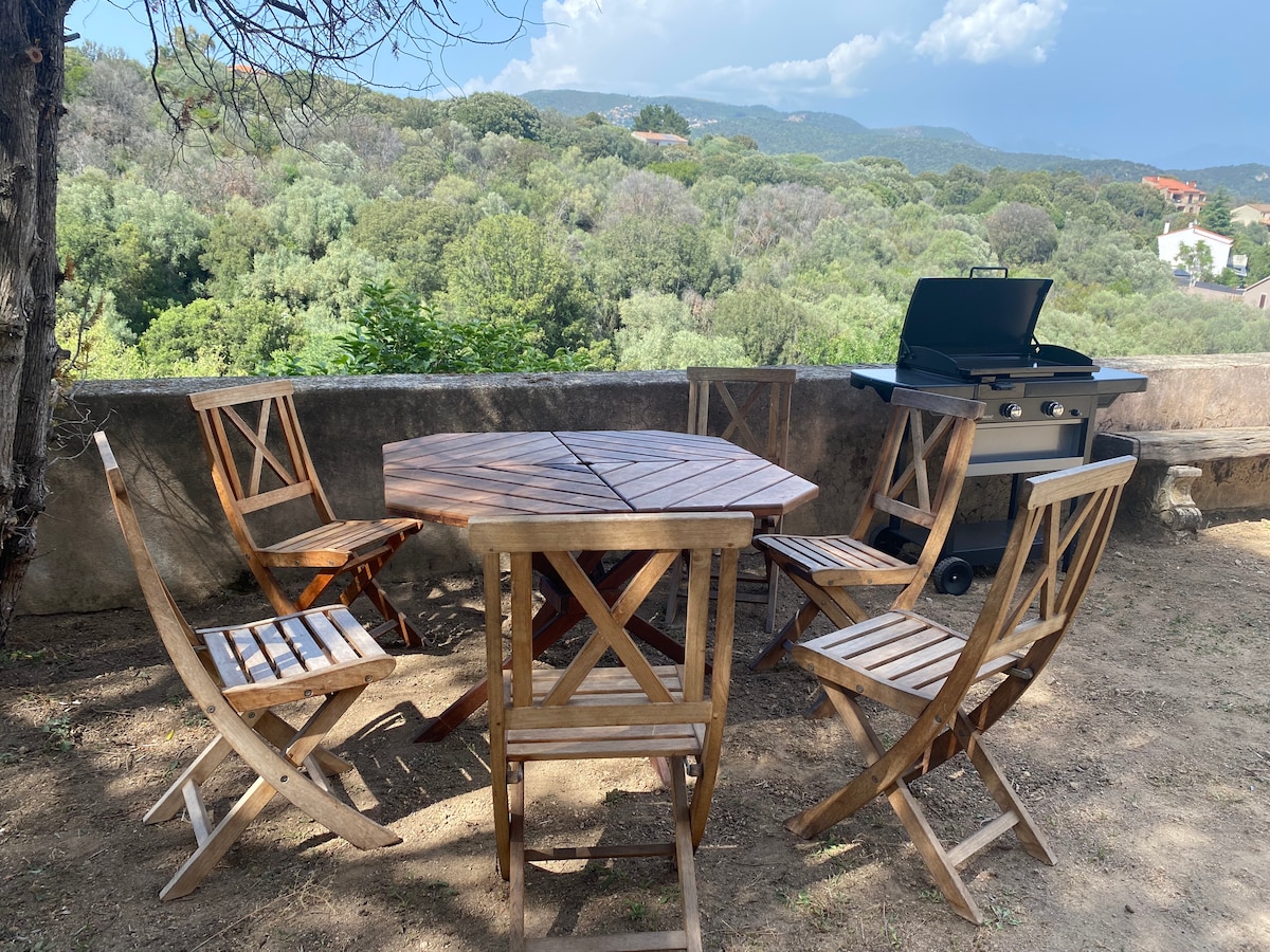 Šis Korsikos stiliaus namas yra Valinco įlankos aukštumose, Figaniella kaimelyje. Jame yra visa reikalinga įranga, kad jūsų viešnagė būtų nepamirštama. Čia yra visi elementai, kad galėtumėte visapusiškai mėgautis kalnu, bet taip pat ir jūra, kuri yra už 15 minučių kelio automobiliu. Terasa su nuostabiu vaizdu suteiks jums visiško kraštovaizdžio pasikeitimo jausmą.