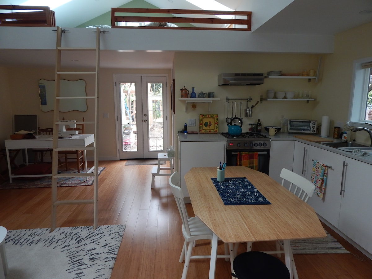 Mėgaukitės komfortu ir ramybe vieno iš mėgstamiausių Berklio rajonų širdyje! Vos keli žingsniai iki kavinių ir turgų, viskas, ko jums reikia, yra vos už kvartalo - BARTAS už 10 minučių kelio pėsčiomis, autobusų linijos dar arčiau eina į UC ir aplink miestą! Tikrai geriausia, ką gali pasiūlyti Šiaurės Berklis; privatus sodas, pirtis, lauko dušas ir miegas iki 4 vietų su dvigule lova lofte ir papildoma patogia karalienės ištraukiama lova denyje. *Laiptai gali netikti riboto judrumo asmenims, mažiems vaikams ar augintiniams.