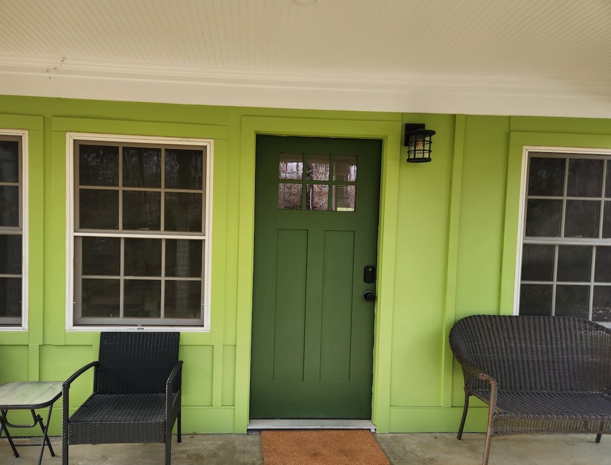 Privatus butas (iki 4) nuostabioje pietinėje Albemarle apygardoje - už 1 mylios nuo Pippin Hill ir puiki starto vieta daugybei kitų vyno daryklų, alaus daryklų, sidro, žygių pėsčiomis ir visa kita, ką gali pasiūlyti Cville! 750 kv. pėdų su atskiru įėjimu į visišką privatumą, kuriame yra didelis miegamasis su dvigule lova; svetainė su 60colių televizoriumi, futonas (miegamieji 2), valgymo zona, mini šaldytuvas, Keurig ir mikrobangų krosnelė; ir didelis vonios kambarys su dviem kriauklėmis.