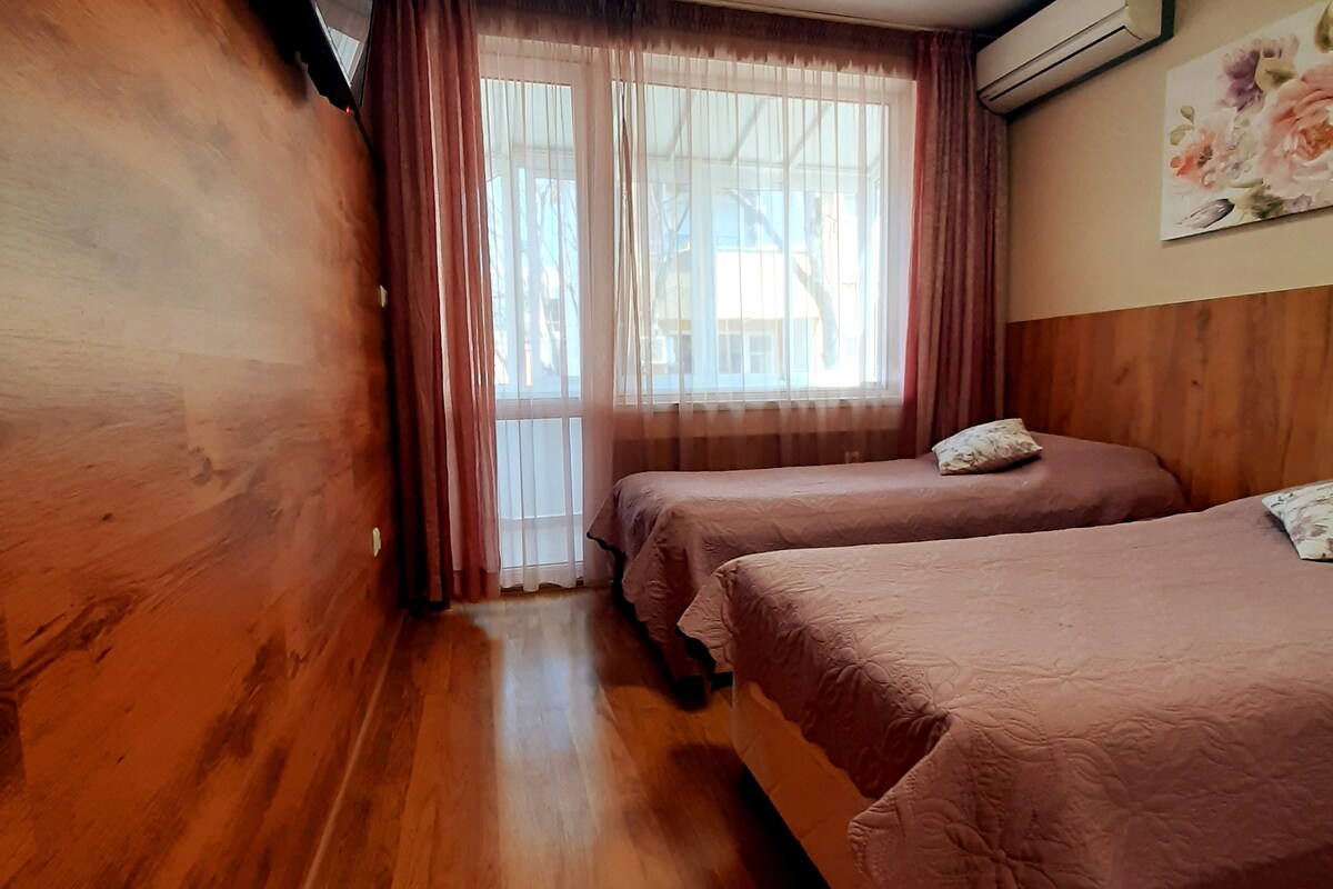 45 kv. m butas, mažas, bet tikras „brangakmenis“- viduje rasite viską, ko reikia pilnai viešnagei ir be rūpesčių atostogoms. Jis yra antrame pastato aukšte nuo septintojo dešimtmečio, be lifto. Šiuolaikiškai įrengtas su dėmesiu detalėms. Tai vieta leidžia jums būti minučių nuo visų pramogų, paplūdimys⛱️, naktinis gyvenimas 🍸 Varna, tuo pačiu metu jums yra tik 10 minučių pėsčiomis nuo centro ir pėsčiųjų zonos.