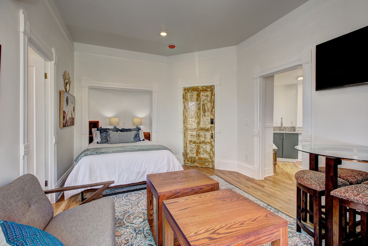 Puiki vieta! Naujai rekonstruotas studijos tipo butas yra už istorinio traukinių depo. 5 min. kelio nuo oro uosto. Pėsčiomis pasieksite Boisio centrą, Boise State Uni ir Greenbelt. Privačioje studijoje yra granito ir mėsininkų blokų stalviršiai, dvigulė lova, kaitlentė, mikrobangų krosnelė, mini šaldytuvas, kavos aparatas, Bluetooth stereofoninis ir plytelių dušas. Taip pat yra bendras skalbimo kambarys ilgesnės viešnagės svečiams. Mėgaukitės lengva prieiga prie visko iš šios puikiai įrengtos namų bazės.