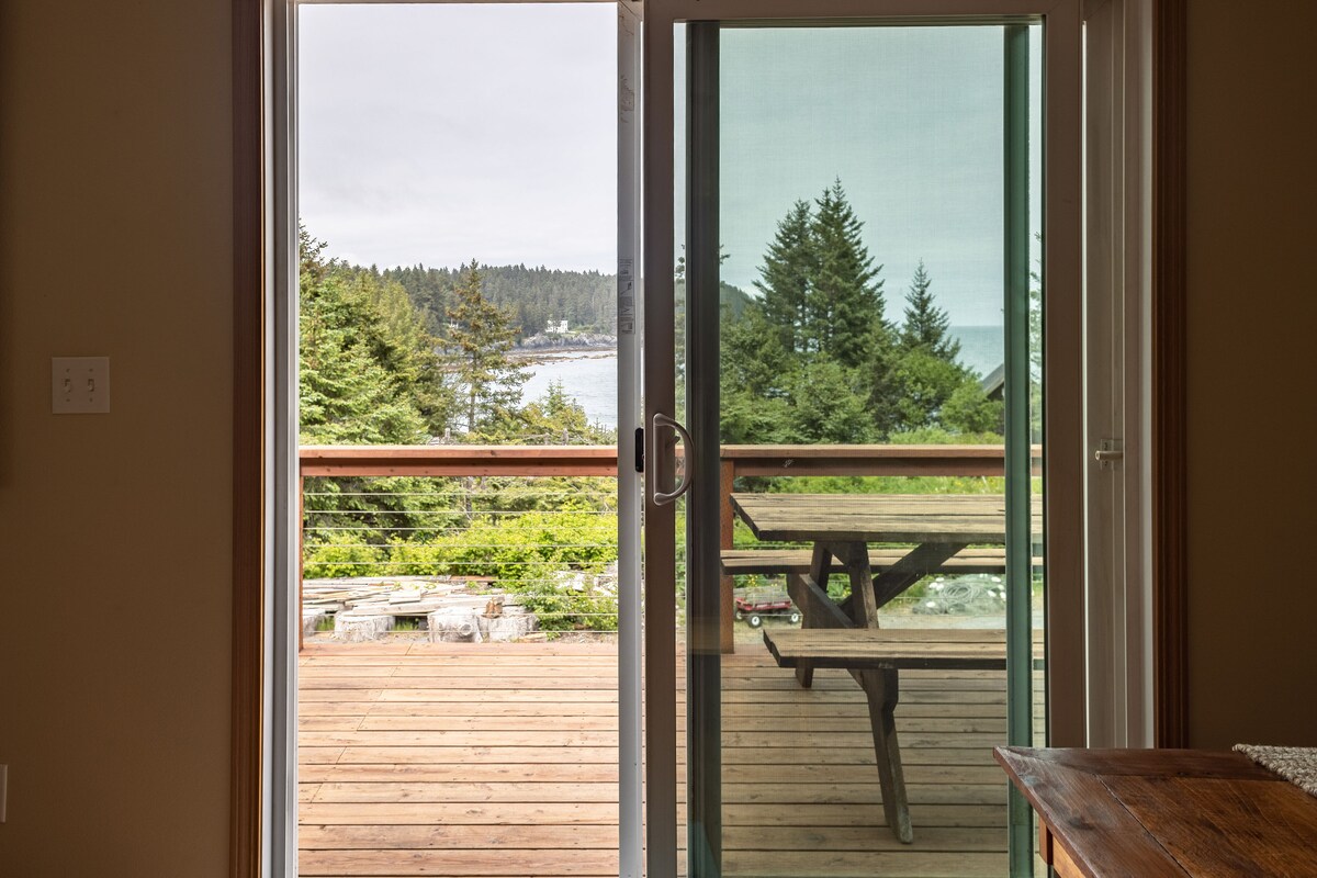 Esate už kelių žingsnių nuo paplūdimių, papuoštų jūros stiklu, kur banginiai pažeidžia, ūdros žaidžia ir ereliai. Mūsų erdvus būstas yra netoli eglių ir iš jo atsiveria įspūdingas vaizdas į vandenyną tiesiai nuo valgomojo stalo. Praleiskite dienas vaikščiodami netoliese esančiais takais arba leistis į nuotykius palei pakrantę mūsų nemokamose baidarėse. Vienos dienos pabaigoje atsipalaiduokite mūsų verandoje arba apsistokite netoli laužo. Užmigkite prie vandenyno banglenčių sporto ir pabuskite iki saulėtekio virš vandens.