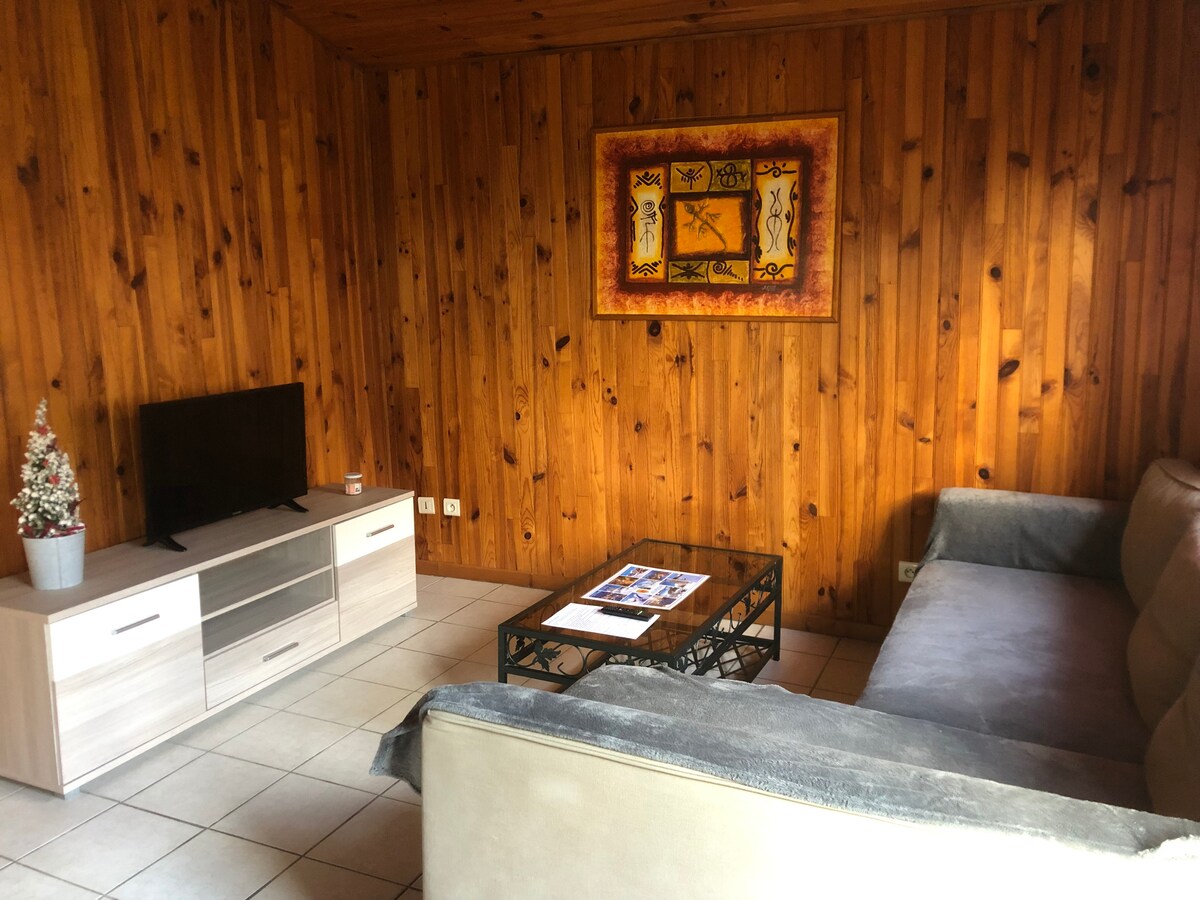 Mes nesame Megève, bet aš pastatiau savo kotedžą 2010 m. su 3 miegamaisiais, už papildomą mokestį yra skėtinė lova mažiesiems, pilnai įrengta virtuvė, atvira didelei svetainei, internetas su pluoštu, medinis židinys ir granulių viryklė, grįžtamas oro kondicionierius svetainėje, dušo vonios kambarys ir vonia, didelis 2200 m² miško sklypas su ūkiniais pastatais , naujas baseinas vėl veikia nuo 2025 m. birželio mėn., lauko terasos ir kepsninė. Jūsų vaikams 1 sūpynės.😉