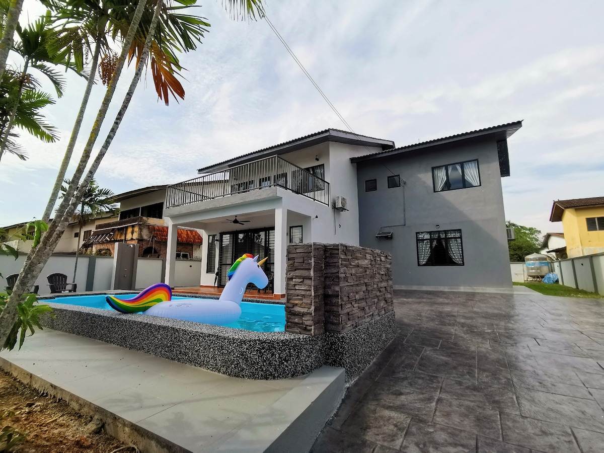 Enjoy a memorable stay with us! 🏡 Listing Highlights • Spacious homestay with option to add more rooms/beds & pax (flexible for larger groups). • BBQ Pit available → add-on RM50 per stay, includes 2 bags of charcoal. • Swimming pool for fun and relaxation. • Large outdoor space → perfect for family activities, games, or just chilling. • Karaoke / PA system available upon request (subject to availability). • Great choice for family gatherings, reunions, celebrations, and group stays.