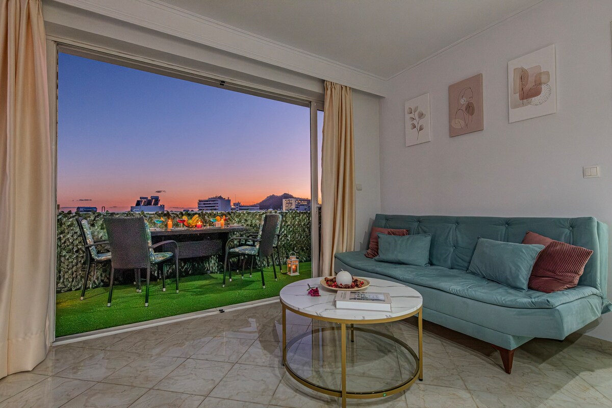 Įspūdingi panoraminiai Partenono akropolio vaizdai iš buto vidaus su atviru neužblokuotu horizontu ir įspūdingu vaizdu į miestą, jūra, saulėlydžiu, Akropoliu ir Likabeto kalvos vaizdais iš balkonų! Įsikūręs pačiame istorinio Atėnų trikampio centre, kurį sudaro Akropolis Partenonas, Olimpinio Dzeuso kolonos, esančios šalia Zappeion salės Nacionalinių sodų ir Panathenaic stadiono(Kallimarmaro), kuriame vyko pirmosios olimpinės žaidynės, centre.