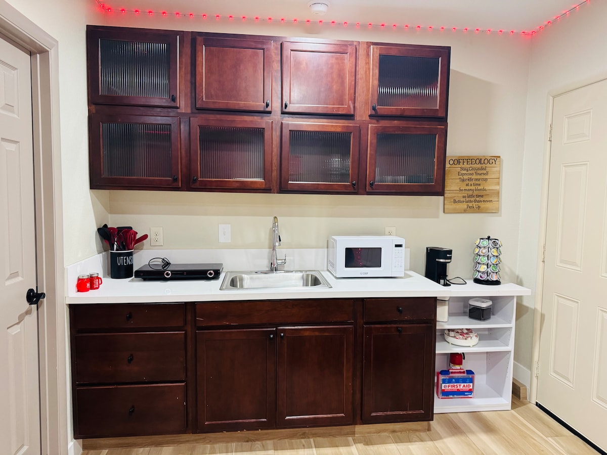 Mažas, privatus butas netoli greitkelio, maisto prekių parduotuvių ir restoranų. Visiškai rekonstruota garažo erdvė su virtuvėle, vonios kambarys (dušas), miegamasis (televizorius, privatus oro kondicionierius ir šildytuvas), svetainė (televizorius, centrinis šildymas/oro kondicionierius). Įeina greitas WI-FI, Netflix, privatus įėjimas, nemokama automobilių stovėjimo aikštelė prie įvažiavimo. Lengvas atvykimas be rakto. Rekomenduojamas automobilis: 15 min. iki Red Roko, 10-15 min. iki Fremonto gatvės ir Arts rajono, 15-20 min. iki Stripo.