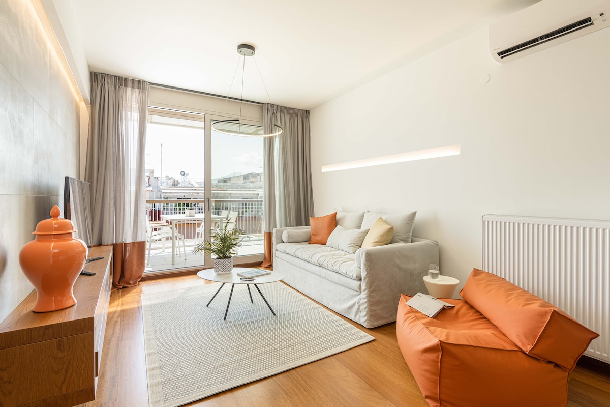 Swan Suite – Stylish Stay Exactly in the Center of Thessaloniki Step into Swan, a luxurious suite exactly in the center, on Mavili Square. Enjoy wonderful city views from the 7th-floor terrace, perfect for morning coffee or evening relaxation. Just 4 minutes from the metro, close to cafés, restaurants, shops, and nightlife. The suite features a fully equipped kitchen, Netflix, COSMOTE TV , premium linens, modern cozy design, and thoughtful touches to make your stay comfortable and memorable.