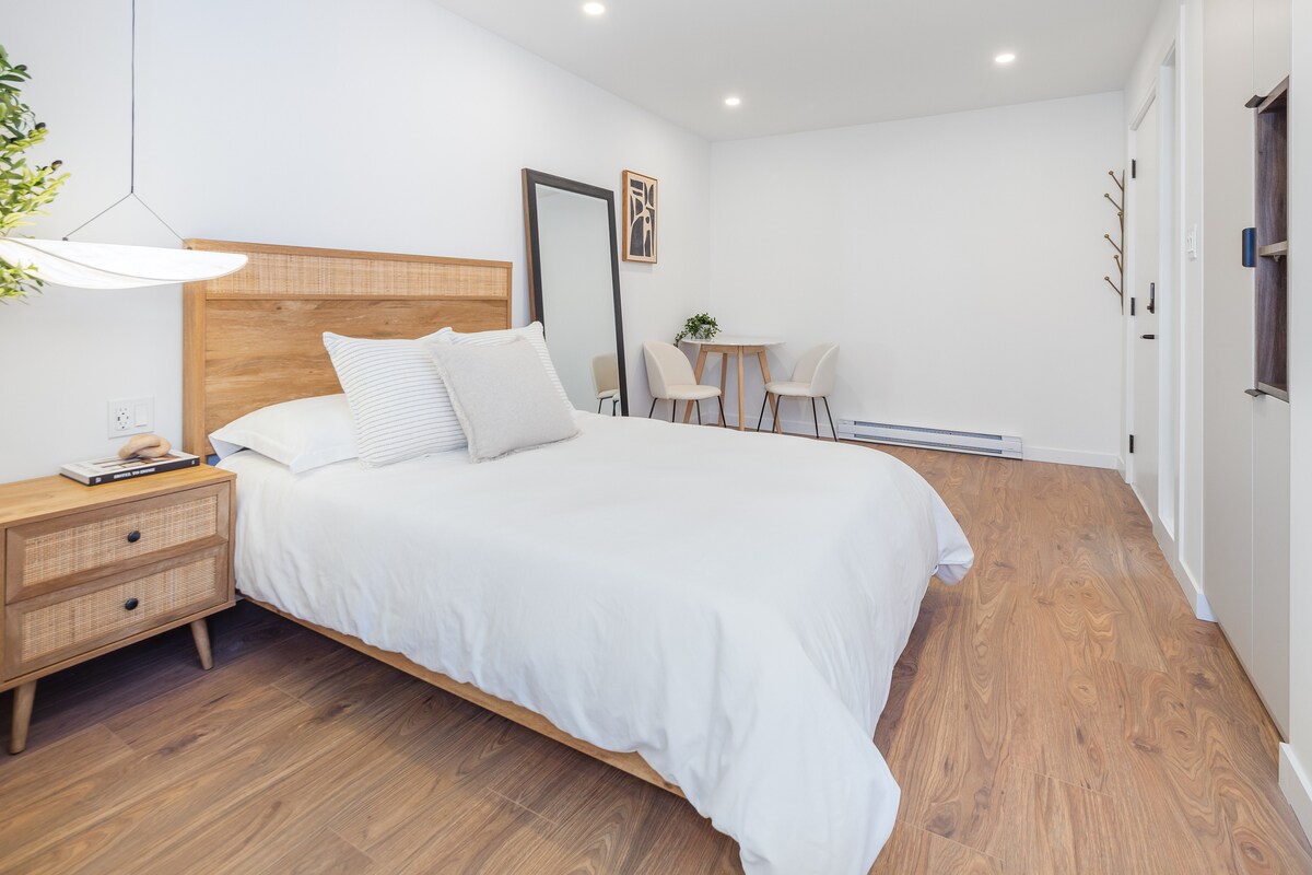 Modern, bright basement studio with queen bed and sofa bed. Fully equipped kitchenette includes cooktop, microwave, kettle, cookware, and flatware. Private bathroom with large walk-in shower and in-suite washer/dryer. Located in a quiet neighborhood near SFU—easy access by foot, transit, or car. Just 30 mins to Downtown Vancouver by car, or 45–60 mins by transit. Clean, comfortable, and stocked with all necessities. Note: We love pets but we DO NOT allow cats.