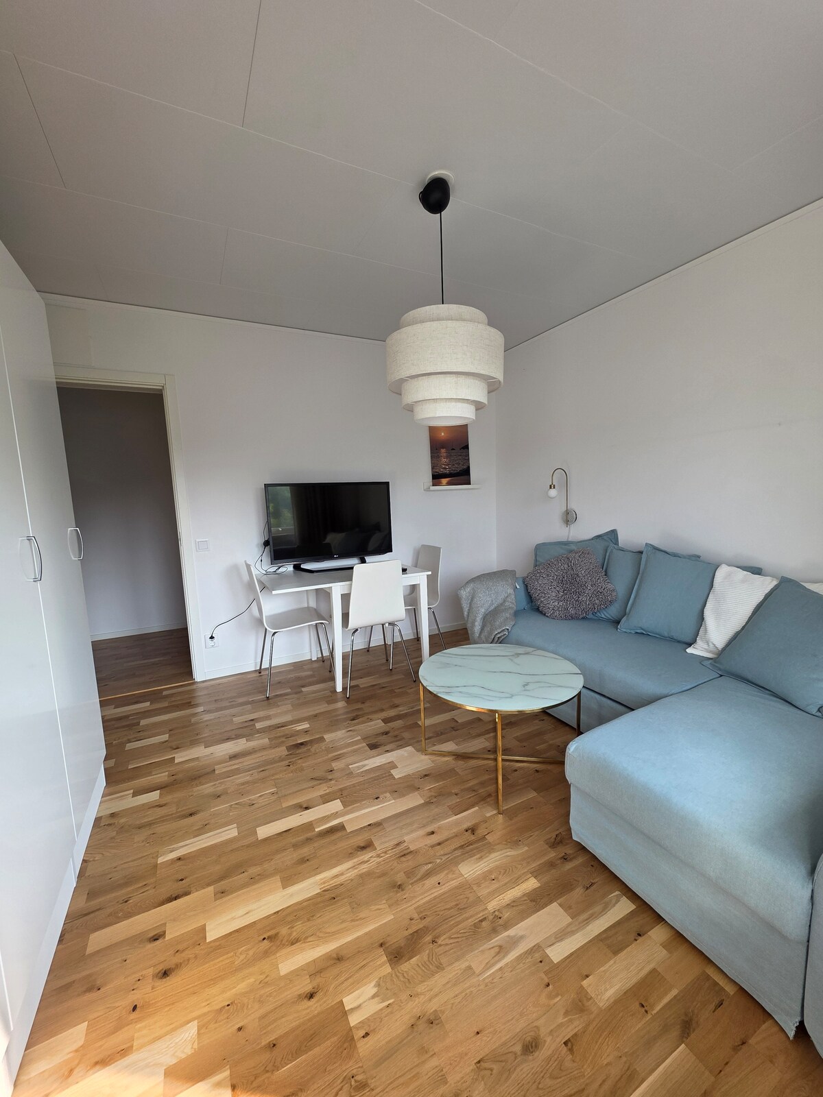 Žavingi apartamentai netoli vandenyno, kaimo klubai ir miesto gyvenimas. Mėgaukitės rytine kava saulėje, sėdėdami ant verandos, apsuptos gražios gamtos. Bute yra visa reikalinga įranga, šviesūs ir šiuolaikiški baldai. Viešasis transportas yra vos už minutės pėsčiomis ir greitai bei lengvai nuveš jus į Kungsbacka ir toliau į Geteborgą apsipirkti arba gyventi naktį.