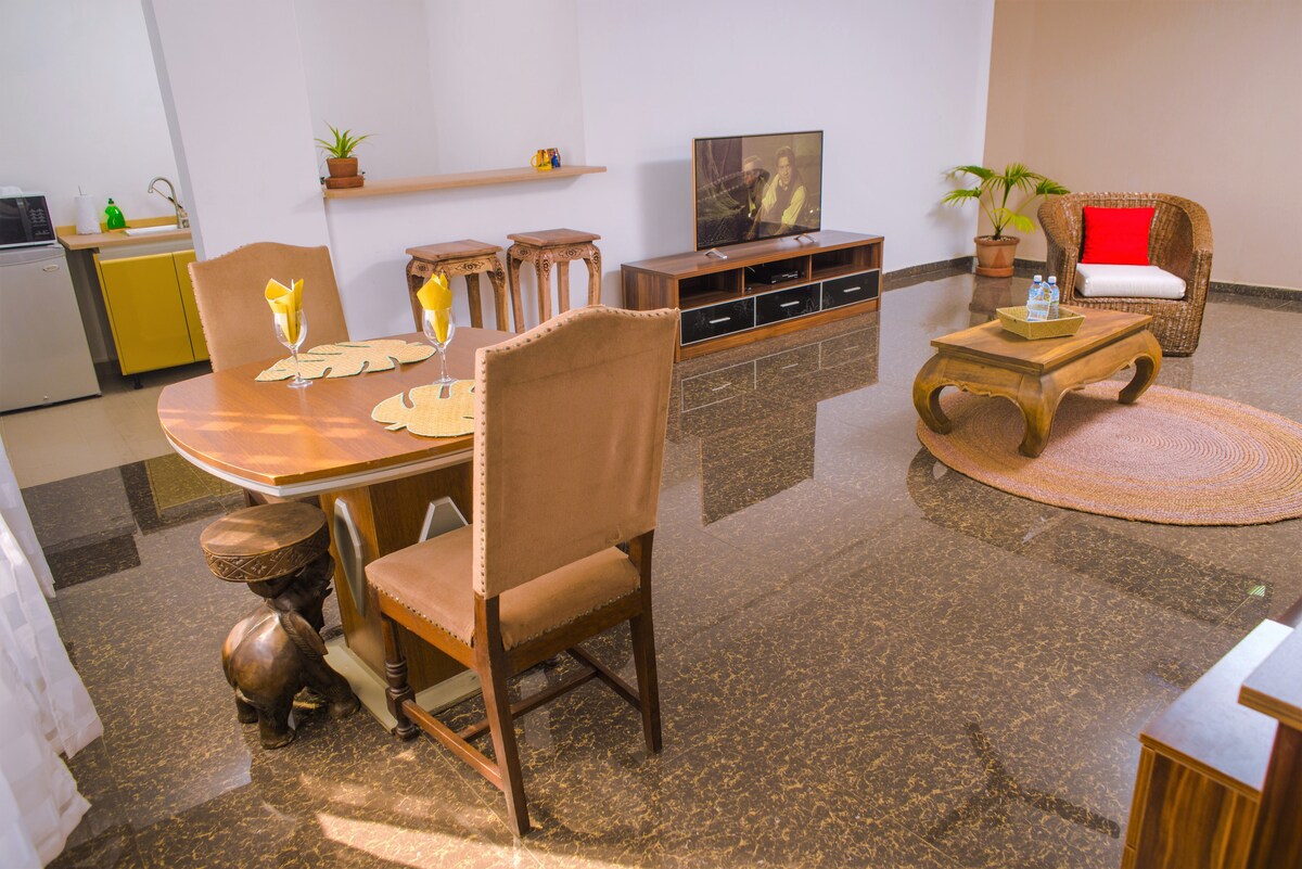 Panoraminėje rezidencijoje yra svetainė su įrengta atvira virtuve, trimis miegamaisiais ir mezoninu; du vonios kambariai. Wi-Fi balkonai, palydovinė televizija, mini baras, Kita. Antananarivo šiuo metu susiduria su vandens problemomis, bute yra 2 rezervuarai, tačiau gedus Jiramai, būtina rankiniu būdu užpildyti šiuos rezervuarus siurbliu priešais butą. Nutrūkus elektros tiekimui, bute nėra gelbėjimo grupės.