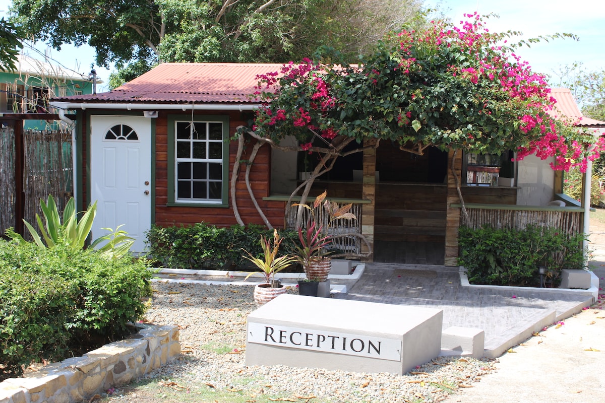 Pasinerkite į vietinio Karibų kaimo gamtos grožį vos už 1-2 minučių kelio pėsčiomis nuo Crabbe Hill paplūdimio - vieno geriausių paplūdimių Antigvoje. Privačios dvigubos durys nuves jus į apačioje esančią atviro plano studiją su pilnai įrengta virtuve, dvigule lova, dušo kambariu ir A/C. Mėgaukitės stikline vyno ir saulėlydžiu iš terasos su dienos lova ir kepsnine. Taip pat įskaičiuoti paplūdimio gultai ir skėčiai Crabbe Hill paplūdimyje. Puikiai tinka kūrybiškam poilsiui, vienam keliautojui ar romantiškam poilsiui.