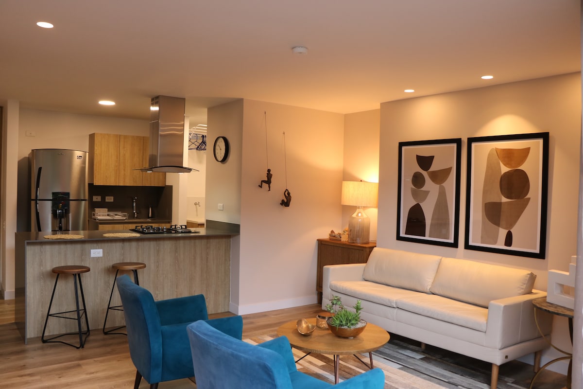 Modernus automatizuotas butas su atskiru kambariu, svetaine ir virtuve, pilnai įrengtas, 200 MB internetu, oro kondicionieriumi ir įspūdingu vaizdu į miestą. Pastatas yra geriausiame Medeljino, El Poblado rajone, netoli EAFIT universiteto, Auksinės mylios, prekybos centrų, prekybos centrų, restoranų ir Aguacatala metro stoties. Jame yra bendradarbystės zona, kavinė, sporto salė ir visą parą veikiantis stebėjimas.