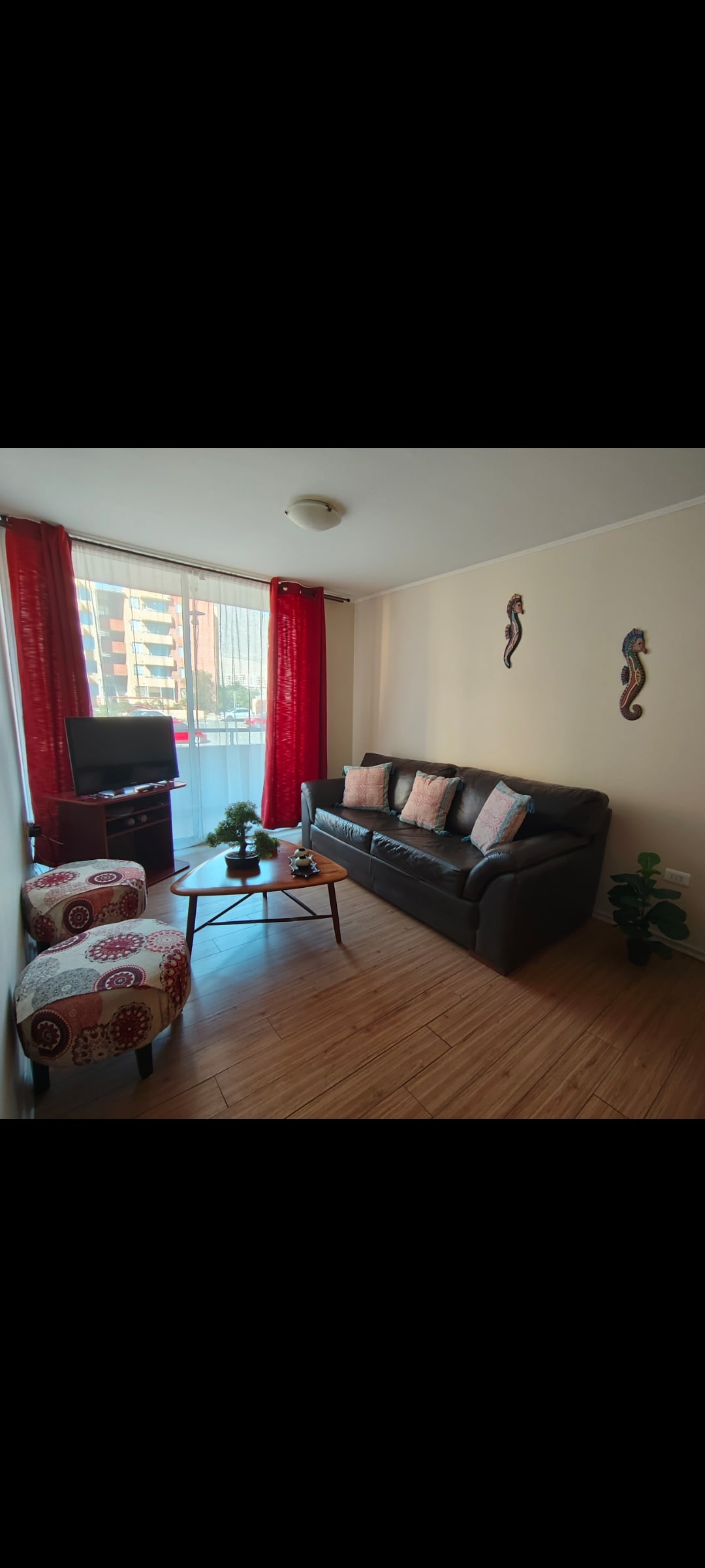 Gražus, patogus ir patogus, esantis pirmame aukšte (kondominiumas su visą parą veikiančiu stebėjimu). Pilnai įrengta 5 žmonėms, rami ir šeimyninė erdvė, laiptai nuo Jumbo prekybos centro, vaistinių. 5 min. kelio automobiliu iki prekybos centro „Mall La Portada“ („Lider“, „Tottus“, „Mc Donalds“, „KFC“, „Pubs“, parduotuvių ir kt.) ir 10 min. kelio pėsčiomis nuo Balneario Trocadero. Jame yra privati automobilių stovėjimo aikštelė, baseinas ir sporto salė (po registracijos).