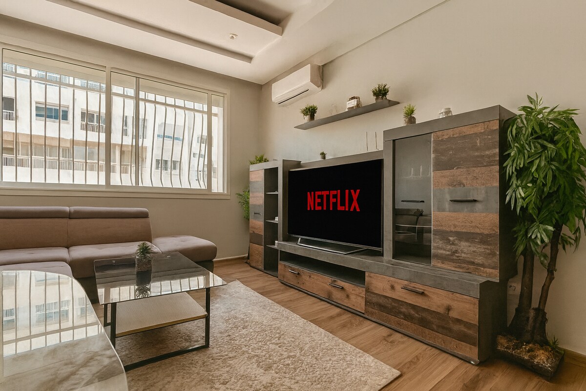 Prabangus butas Marina Agadir, skoningai įrengtas, pilnai įrengtas. -1 TĖVŲ MIEGAMASIS + PERSIRENGIMO KAMBARYS + VONIOS KAMBARYS (vonia) +lodžija. - 1 LAISVAS KAMBARYS +vonios kambarys (dušas) - 1 SVETAINĖ 2 SOFOS + televizorius + nemokamas Wi-Fi + balkonas - 1 valgomojo ZONA, 6 kėdės (puikiai tinka nuotoliniam darbui) - 1 PILNAI ĮRENGTA VIRTUVĖ Gyvenamoji vieta yra ant jūros kranto, apsupta vešlių sodų; gražių baseinų; netoli paplūdimio; karnizas; laisvalaikio uostas; parduotuvės...ir kt.