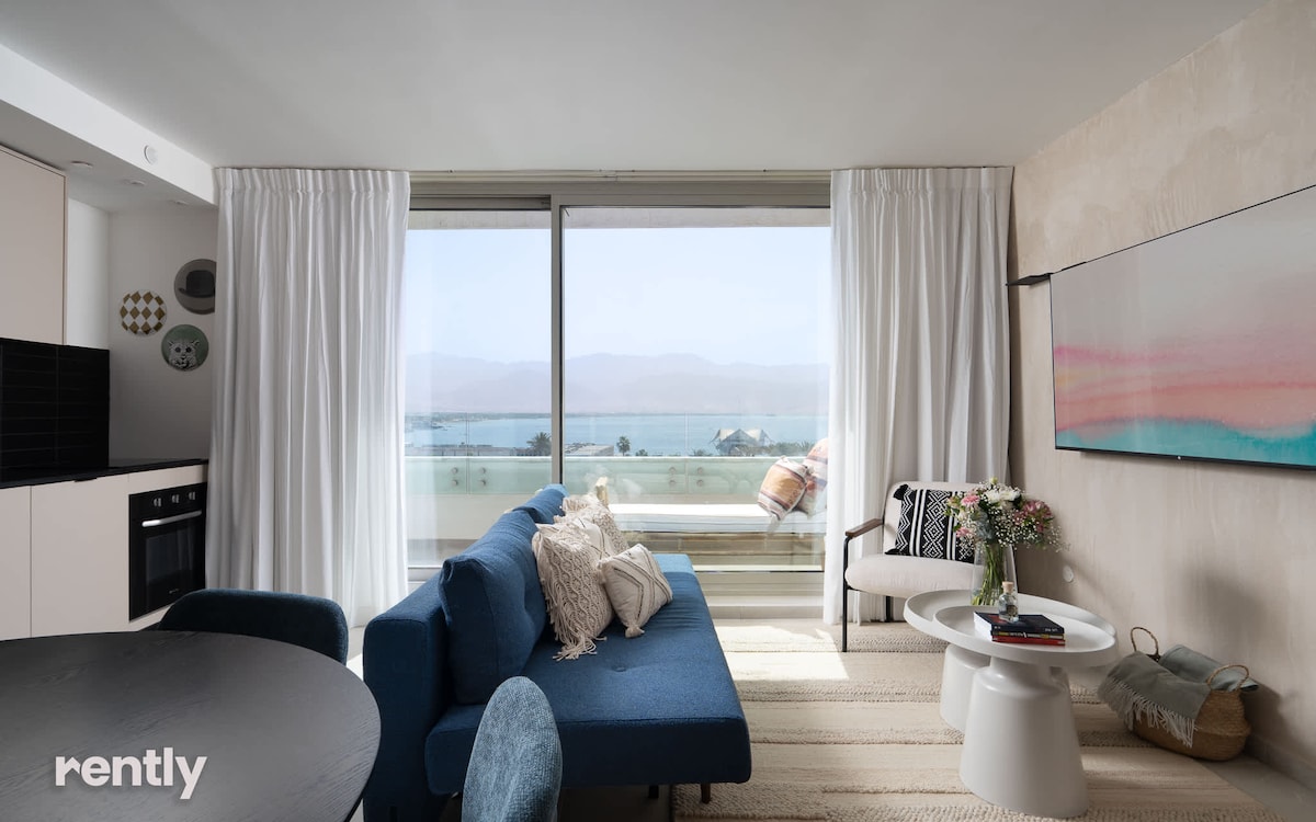 ברוכים הבאים לסוויטה הנשיאותית והבלעדית של מתחם סי סייד היוקרתי באילת – חוויית אירוח פרטית ומוקפדת ברמה הגבוהה ביותר. מדובר בדירת קונספט נדירה, יחידה מסוגה בפרויקט, המשלבת עיצוב מודרני, מרחב פתוח ונוף עוצר נשימה לים האדום.