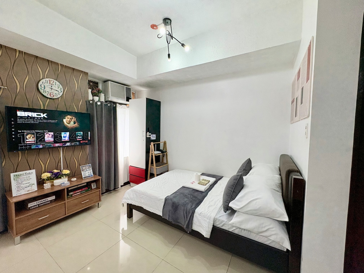 Naujausias pastatas Araneta Cubao „Manhattan Plaza Tower 2“ Atsipalaiduokite savo „Simple Yet Cozy Studio“ bute, esančiame Aranetoje, Kesone. Įėję į būstą turėsite virtuvę su visais įrankiais ir virtuvės reikmenimis. Mėgaukitės žiūrėdami HD 55col. išmaniajame televizoriuje su „Premium Netflix“ ir „Disney+“ su itin sparčiu interneto ryšiu 200 MBPS. Gero nakties miego su karališko dydžio lova ir patogiu čiužiniu su šaltu ir tyliu „Aircon“. Atpalaiduojanti ir rami vakaro naktis su SM vaizdu balkone