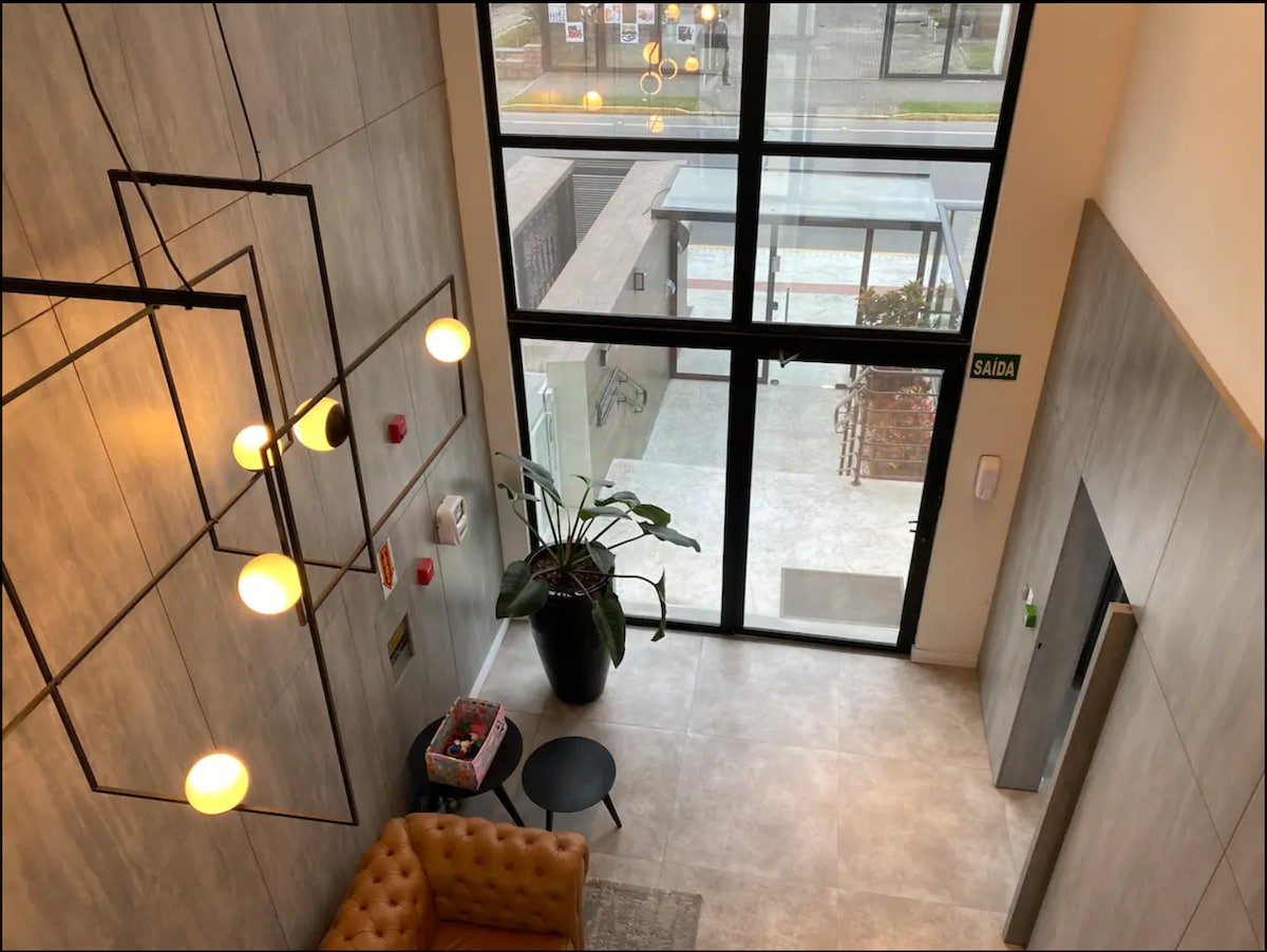 Loftas Joinvilio širdyje, netoli barų, degalinės, prekybos centro, gastronominės gatvės, už 2 kvartalų nuo Centreventos ir Unimed. Lofte yra Wi-Fi, televizorius, privati ir dengta automobilių stovėjimo aikštelė, 2 liftai, pilnai įrengta virtuvė, skalbykla ir gražus balkonas.