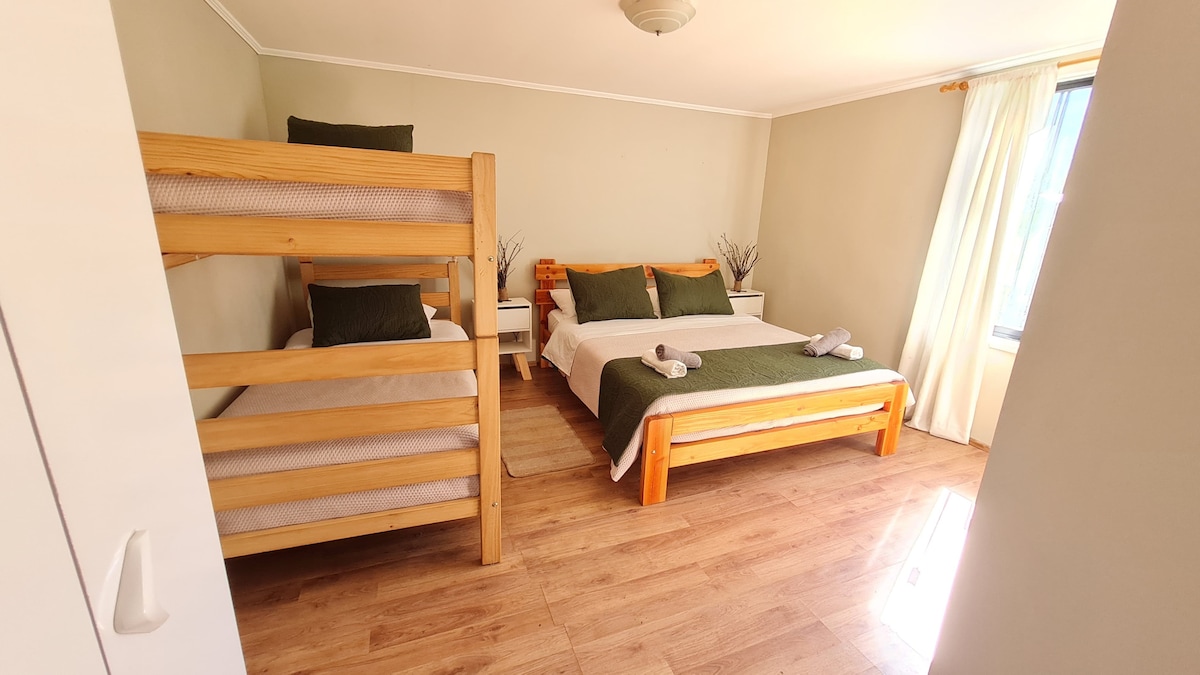 Kas įtraukta? ° 1 pilna lova ° 1 Futón Cama ° A/C ° Privatus vonios kambarys ° Privati lauko terasa ° Nemokama automobilių stovėjimo aikštelė ° Wi-Fi ° Televizorius bendroje erdvėje ° Įrengta virtuvė bendroje erdvėje Esame už 3,5 km nuo Pukono centro su tiesiogine prieiga prie dviračių, kolektyvinio judėjimo ir prekybos. Papildomi privalumai • Prieiga prie terasos su vaizdu į išorę • ⛳ 50% dcto en Mini Golf Pucón • Priimami augintiniai už papildomą kainą