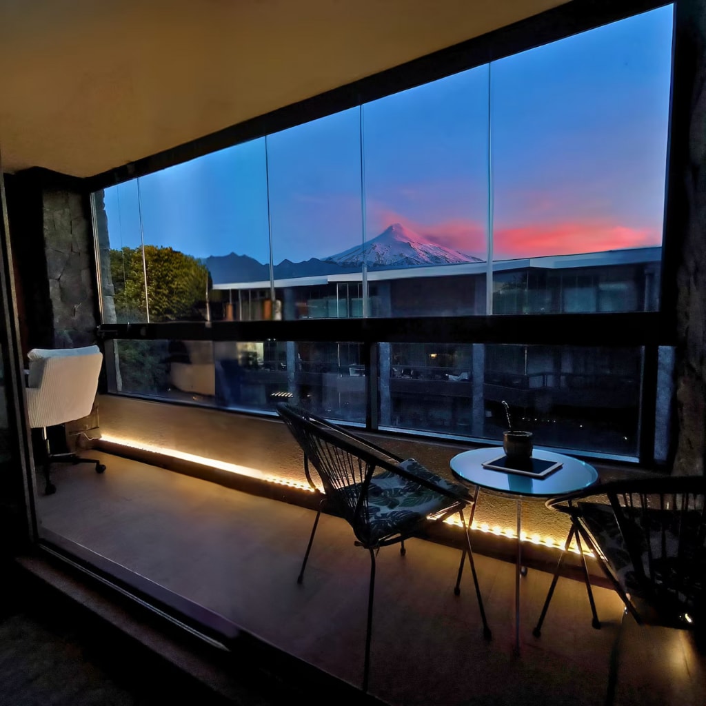 Erdvus ir gražus butas (2 aukštas), „Parque Pinares“ kondominiume (www.parquepinares.cl), esantis ant Viljarikos ežero kranto, su privačiu priėjimu prie ežero, apsuptas vietinių medžių ir labai arti Pucon (mažiau nei 1 km). Su didele svetaine ir terasa su vaizdu į ežerą, laivais ir kalnais. Suite miegamasis su vaizdu į ežerą, įeinančia spinta, apsaugine dėžute ir dideliu vonios kambariu. Čia galima apsilankyti įvairiuose restoranuose, kazino ir naktiniuose klubuose, pasivaikščioti arba naudotis Uber.