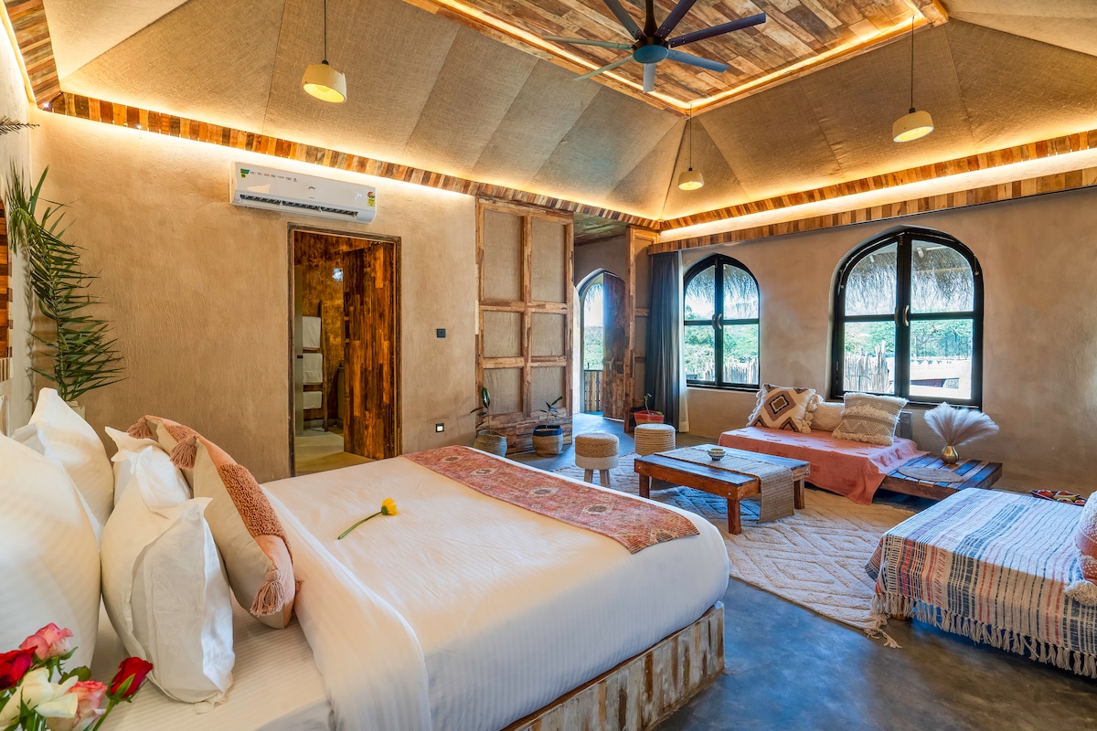 Erdvus ir skoningai įrengtas aukščiausios klasės liukso klasės kambarys „Indulge Udaipur by PACK“ sujungia šiuolaikinę ramybę ir paveldo šilumą. Išeikite į privačią verandą, kad pamatytumėte auksinius aplinkinio dvaro vaizdus. Idealiai tinka poroms ar pavieniams keliautojams, norintiems atsipalaiduoti, šiek tiek apsistoti ir pasinerti į Udaipuro kaimo ramybę - ramybę apvyniotą ramybėje.