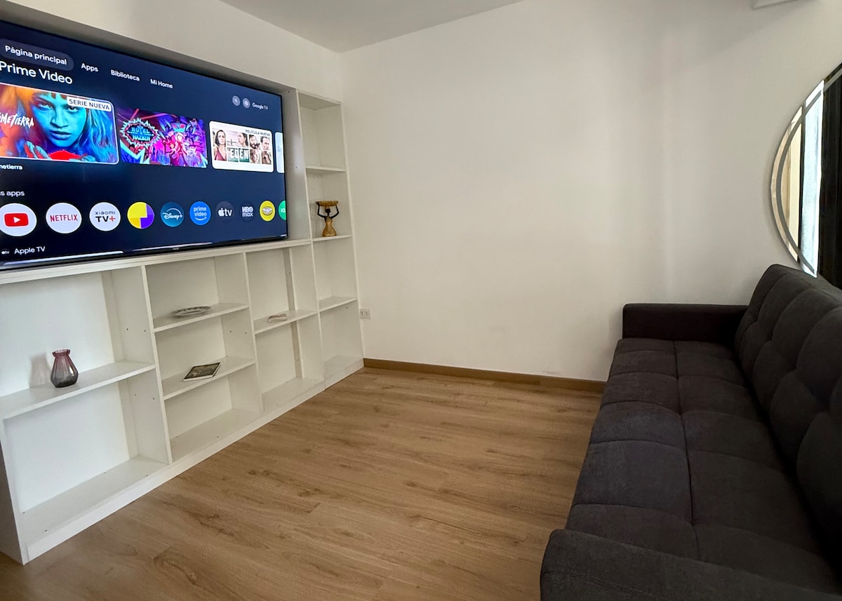 Disfruta de un estudio en estreno, moderno y acogedor, perfecto para parejas que buscan pasar una noche especial. Este monoambiente completamente equipado cuenta con: Cama queen size, espacio acogedor con detalles románticos, smart TV y wifi, cocina moderna totalmente equipada, baño privado moderno con ducha de hidromasajes, con agua caliente, ,ubicado cerca de restaurantes, cafés y lugares de interés. Ideal para aniversarios, celebraciones o simplemente una escapada romántica inolvidable.