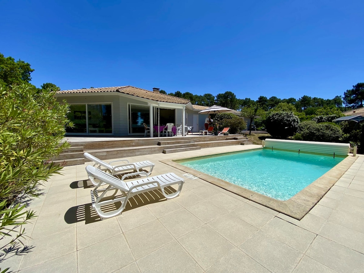Ateikite ir padėkite savo lagaminus į mūsų pilnai įrengtą šeimos kotedžą. Su 6 lovomis, pagrindiniu liukso numeriu su vonios kambariu, antru vonios kambariu ir moderniais patogumais viskas apgalvota jūsų patogumui. Terasa ir miškingas sodas puikiai tinka vakarienei po plančą. Įsikūręs 4* Domaine de la Forge stovyklavietėje, mėgaukitės veikla ir patogumais (šildomu baseinu, čiuožykla, treniruoklių sale...) netoli Bassin d 'Arcachon stebuklų.