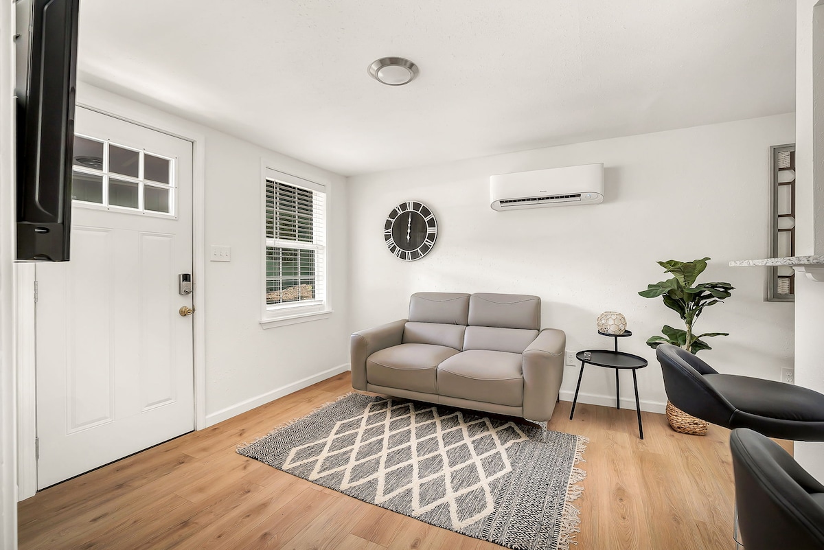 Šis unikalus būstas pasižymi savo stiliumi. Įsikūręs ramiame Park Hill rajone ir naujai rekonstruotas, išsaugant visą šio 1950-ųjų triplekso vintažinį žavesį. Jūs nuomojatės vieną iš 3 butų triplekse, bet turite visą būstą sau. Graži ir gerai įrengta virtuvė su kvarco stalviršiu, retro šaldytuvu ir virykle. Miegamajame yra dvigulė lova ir darbo vieta. Svetainėje yra milžiniškas 65colių televizorius ir miegamojo sofa, taip pat skirta papildomiems svečiams miegoti.