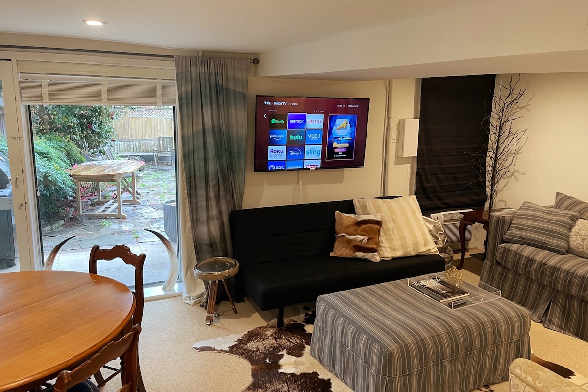 Augintiniams tinkamas brangakmenių dėžutė Anglijos rūsyje su sodu pačioje Džordžtauno širdyje. Žingsniai nuo Tatte ir daugelio parduotuvių. Trumpas pasivaikščiojimas iki kranto arba universiteto. Šeimininkas gyvena viršutiniame aukšte. - Nemokamas leidimas statyti automobilį gatvėje vienam automobiliui. - Kodinės sistemos įėjimas - Profesionaliai išvalyta. - Visa virtuvėlė (indukcinė viryklė, orkaitė, mikrobangų krosnelė) - Dvigulė lova - Dvigulė lova su dvigule lova - Prie interneto prijungta televizija („Roku“ su „Netflix“, „Disney+“ ir pagrindiniu kabeliu) - Verizon internetas (200 mb/s) - Skalbimas