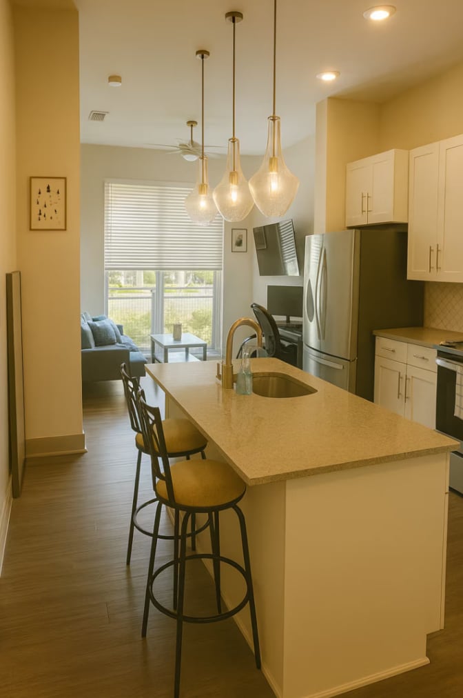 Poilsis prie ežero 1BR | Oro uostas • Baseinas • Sporto salė • Wi-Fi