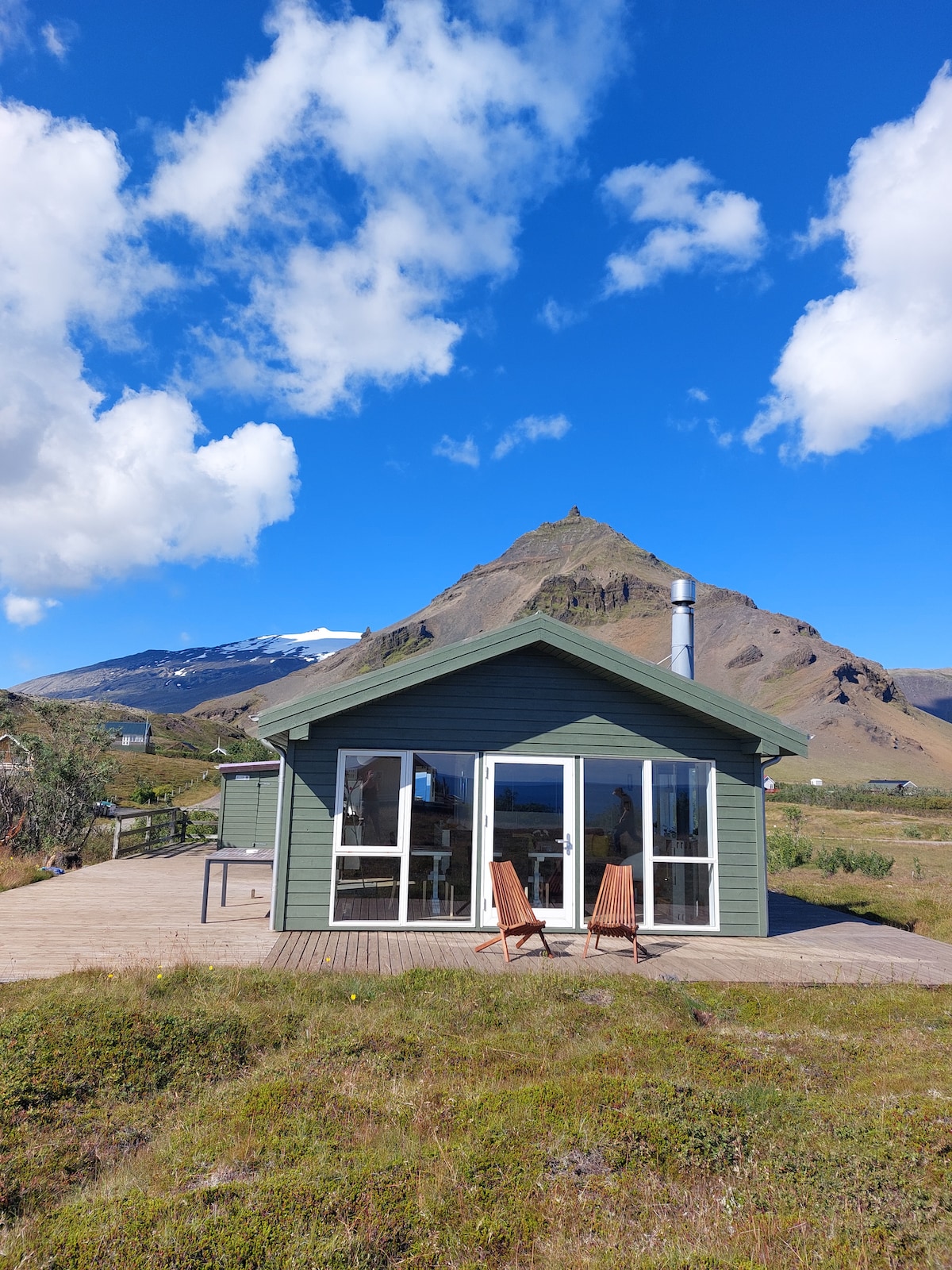 Naujai renovuota trobelė (2021 m.) yra netoli vandenyno su gražiu vandenynu, vos už kelių mylių nuo istorinio Snæfellsjokull ledyno. Geras komfortas namuose. Jame yra didelis židinys ir lauko sūkurinė vonia 100 kv. m terasoje Pėsčiųjų ekskursijos lauke ir pasivaikščiojimuose gamtoje. Pavyzdžiui, lava, ledynas, kalnai, urvai, kriokliai ir seni žvejų kaimai. Istorinė vieta su nuostabia geologija ir turtingais paukščiais. Šio regiono kultūra yra verta patirties.