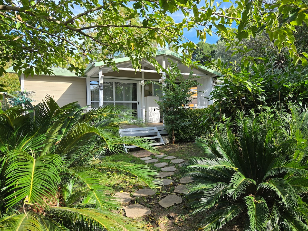 3 miegamųjų kempingo poilsio namelis su oro kondicionieriumi gražios terasos