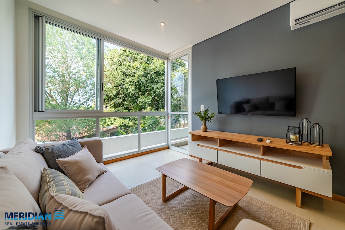 Stilingas 1BR butas vienoje iš geriausių Asunsjono vietovių, pėsčiomis nuo populiariausių prekybos centrų. Mėgaukitės visa virtuve, patogia svetaine, balkonu ir galimybe naudotis nuostabiais pastato patogumais: ant stogo esančiu baseinu ir sporto sale. Jūsų patogumui skirta trumpalaikėms ir ilgalaikėms viešnagėms su visą parą veikiančia registratūra. Jauki erdvė atsipalaiduoti ir jaustis kaip namie.