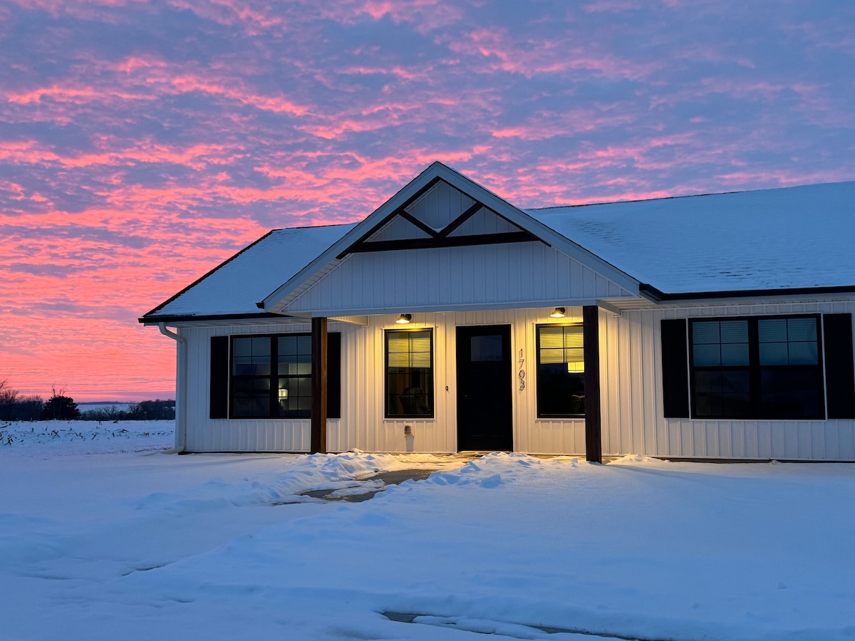 15 min.-Iowa City, 5 min. - Riverside Casino ir 35 min. į rytų Ajovos oro uostą, Cedar Rapids, IA. Patogios lovos, svetainės sekcija išsitraukia į karalienę, paslėpta lova, 32 akrai kalvų, jodinėjimas žirgais (sm. mokestis)*, žiemos pramogos ir žvejybos tvenkinys. Pirmieji 2 svečiai moka bazinę kainą, tada nuo 3 iki 10-os svečių papildomai moka PO 30,00. Jokių VAKARĖLIŲ mūsų ūkyje. Gyvename nuosavybėje atskiruose namuose. Šunys laukiami (paliekant būstą turi būti veisiami)PASTABA: virtuvėlėje nėra ORKAITĖS. * Išsamesnės informacijos ieškokite.